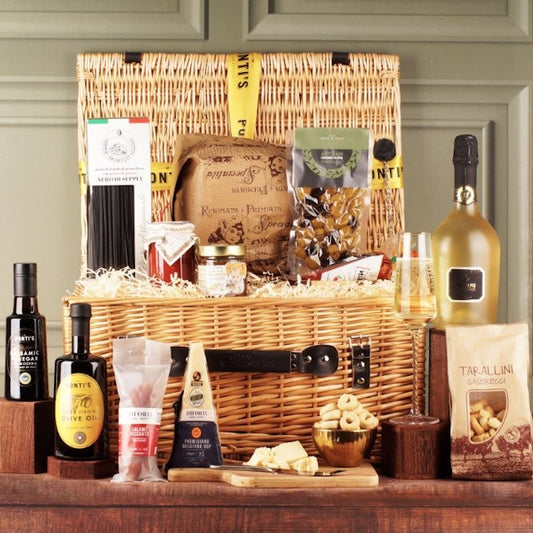 You can indulge in the authentic flavours of Italy with our handpicked Italian Food Hampers; carefully chosen from artisan producers you won’t find on supermarket shelves. Each hamper celebrates the rich culinary heritage of Italy, featuring delicacies such as extra-virgin olive oils, herbs, regional cheeses, handmade pasta, and more. These Italian hampers are perfect for sharing an authentic Italian experience or giving as a wedding gift or any other celebration gift. Our Italian gift baskets arrive beautifully presented and ready to delight. Our hampers are more than a gift, they’re an invitation to savour Italy’s finest tastes, brought together in one unforgettable experience.